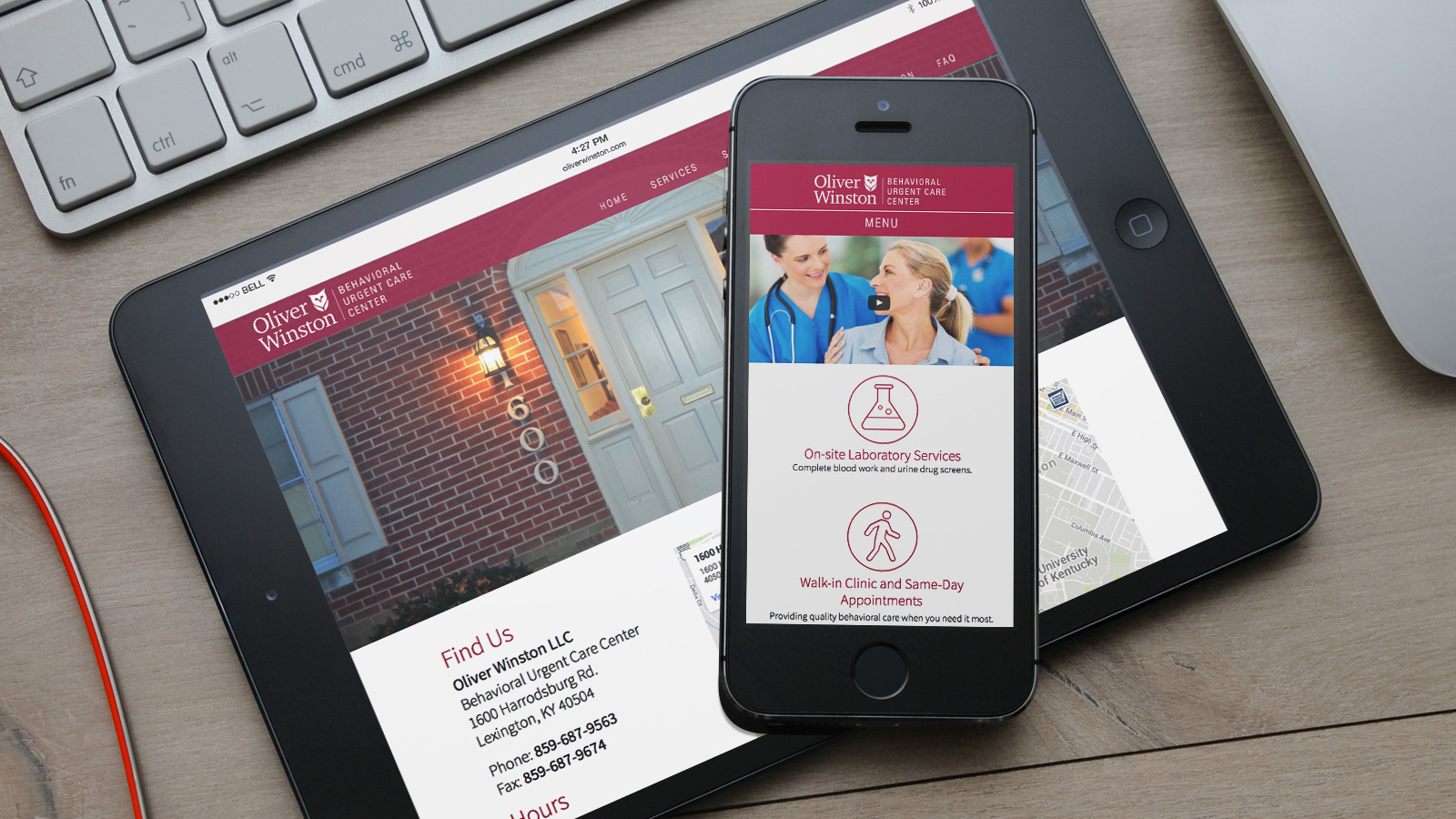 This is a branding project I developed for a new business in Lexington. Oliver Winston is a behavioral urgent care clinic that seeks to fill the gap between emergency care and regular doctor visits for individuals with behavioral health care needs. Elements include logo, letterhead and business cards, and responsive website design.